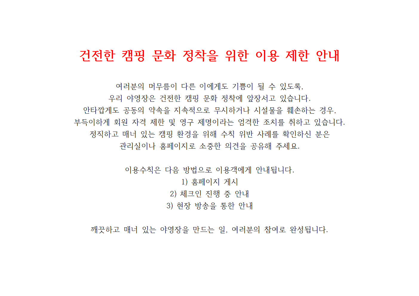 오토캠핑 16면, 프리캠핑 50면이 조성되어 있고,